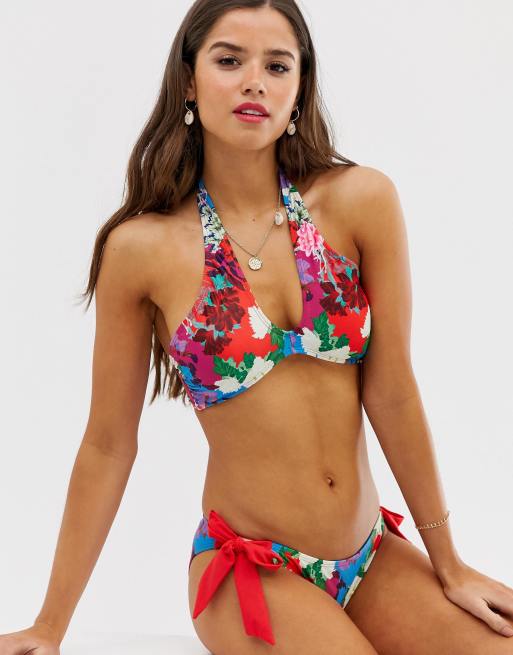 Lost Ink bright floral halter neck bikini top ASOS