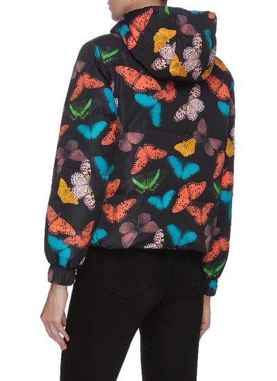 Alice and olivia butterfly puffer jacket online, durham Butterfly Print Reversible Hooded Puffer Jacket In Multi colour online